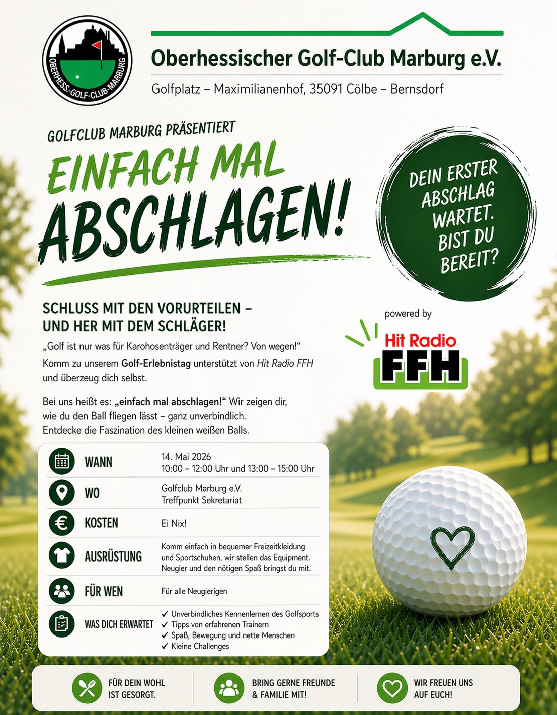 Sie haben auch aktuelle Beiträge, die alle interessieren. Wir freuen uns diese zu erhalten. Senden Sie uns gerne eine E-Mail mit Text und Fotos an info@golf-club-marburg.de